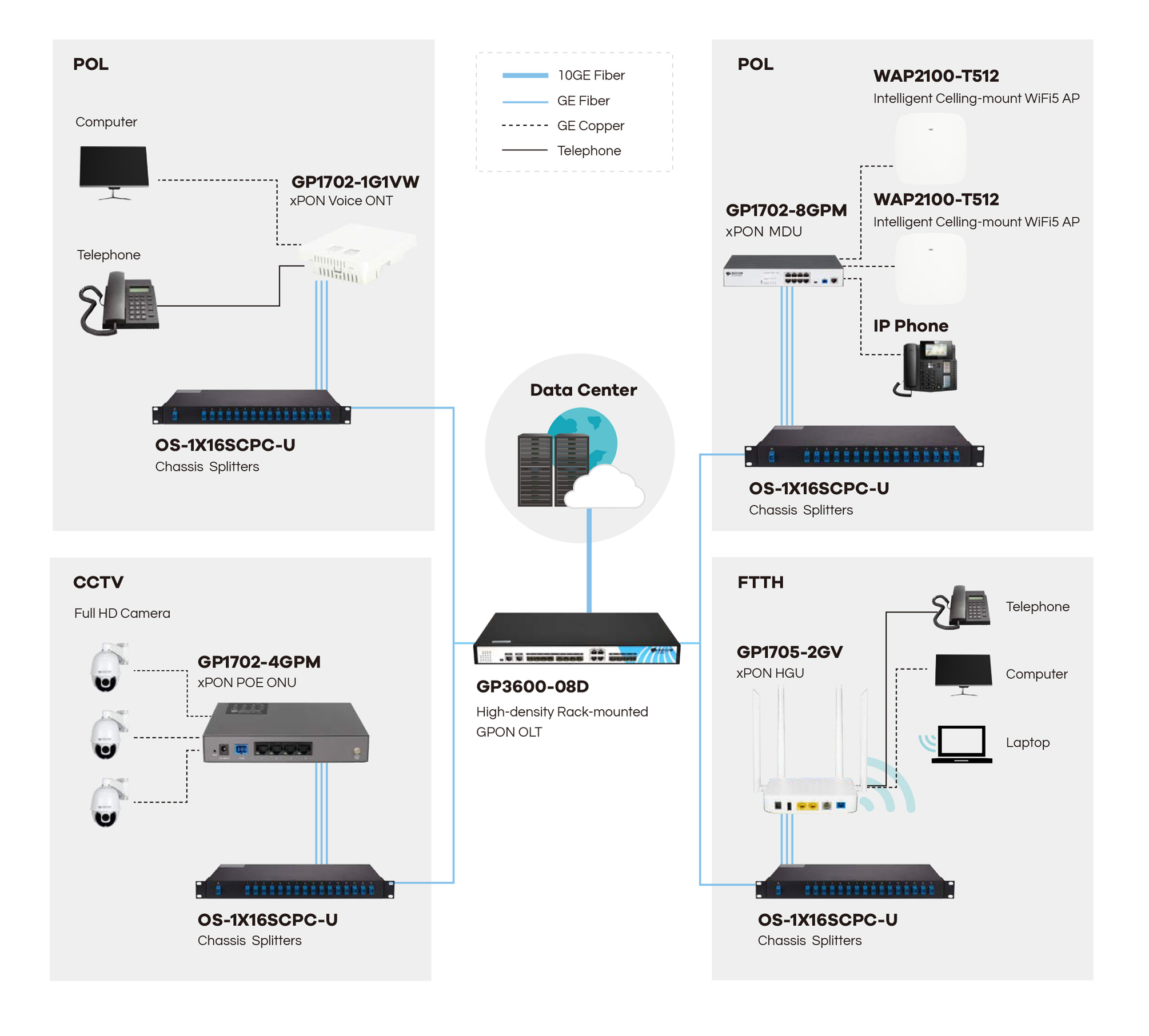 | GP1702-1G1VW | xPON In-wall Voice ONU, 1-Port GPON/EPON (SC/UPC), 1-Port Gigabit RJ45 + 1-Port RJ11(POTS), plastic casing, DC12V/1A power adaptor |